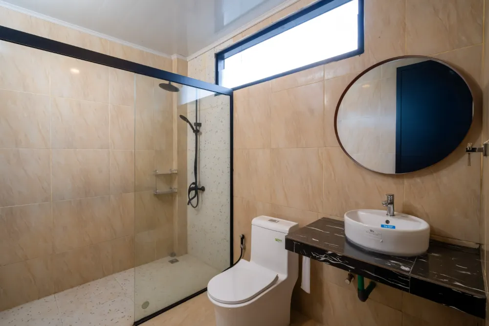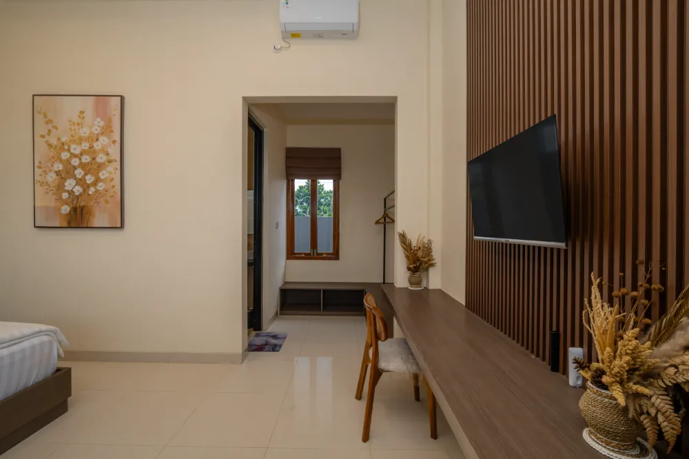 Semua kamar ada bathroom, AC, TV, handuk, hanger, cukup luas kalau tambah extra bed.. View perbukitan. Penjaga villa pun ramah dan sigap..Odetta villa bisa jadi pilihan menginap untuk keluarga! Terima kasih..